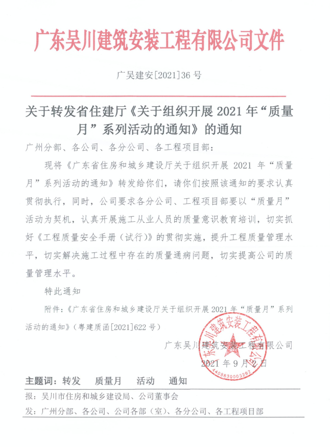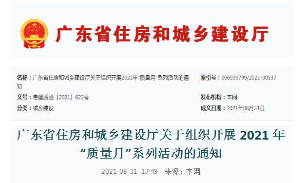 為深入貫徹習(xí)近平新時(shí)代中國特色社會(huì)主義思想,全面落實(shí)黨的十九大和十九屆二中、三中、四中、五中全會(huì)精神,牢固樹立“質(zhì)量第一”的意識(shí),不斷提升建筑工程品質(zhì),根據(jù)《市場(chǎng)監(jiān)管總局等20個(gè)部門關(guān)于開展2021年全國“質(zhì)量月”活動(dòng)的通知》(國市監(jiān)質(zhì)〔2021〕51號(hào)),我廳決定于9月組織開展2021年全省住房城鄉(xiāng)建設(shè)系統(tǒng)“質(zhì)量月”活動(dòng)?,F(xiàn)將有關(guān)事項(xiàng)通知如下: