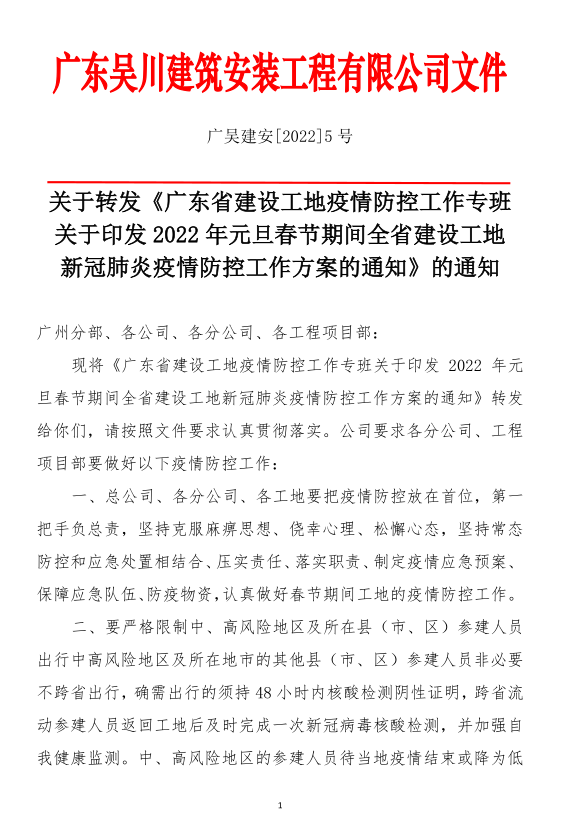 關于轉(zhuǎn)發(fā)《關于印發(fā)2022年元旦春節(jié)期間全省建設工地新冠肺炎疫情防控工作方案的通知》的通知
