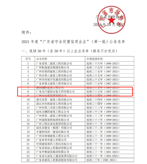 近日,廣東省市場(chǎng)協(xié)會(huì)發(fā)布了2021年度“守合同重信用企業(yè)”(第一批)評(píng)定結(jié)果,我公司榮耀再續(xù),連續(xù)三十五年“廣東省守合同重信用企業(yè)”稱號(hào)。獲得此榮譽(yù),不僅對(duì)公司實(shí)力的認(rèn)可,更是對(duì)誠(chéng)信經(jīng)營(yíng)和優(yōu)質(zhì)服務(wù)的肯定。
